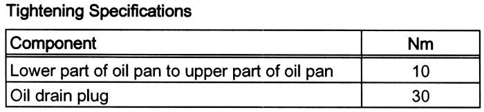 - Set lower part of oil pan in place and fasten all bolts in diagonal sequence to 5 Nm.