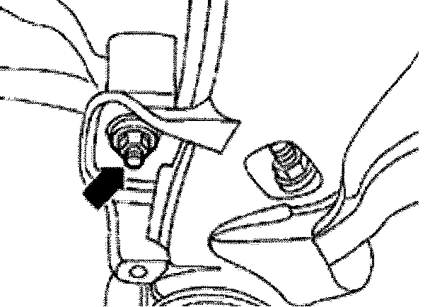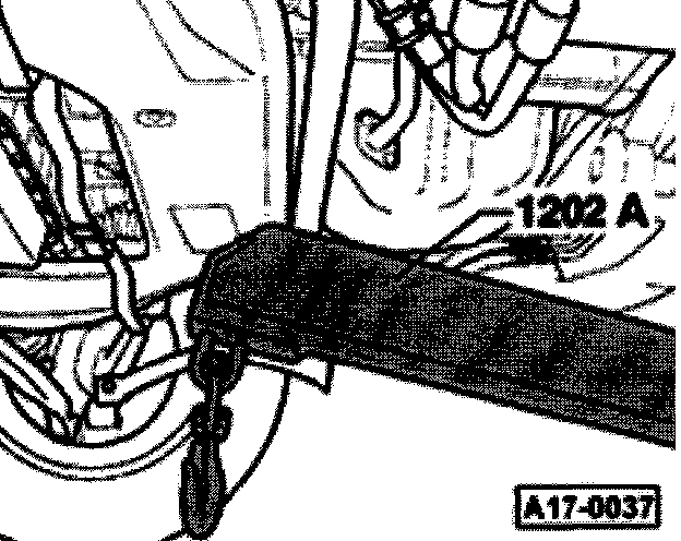 - Loosen nut for left-hand transmission mounting -arrow- until it aligns with lower edge of bolt (turned approximately 4 threads).