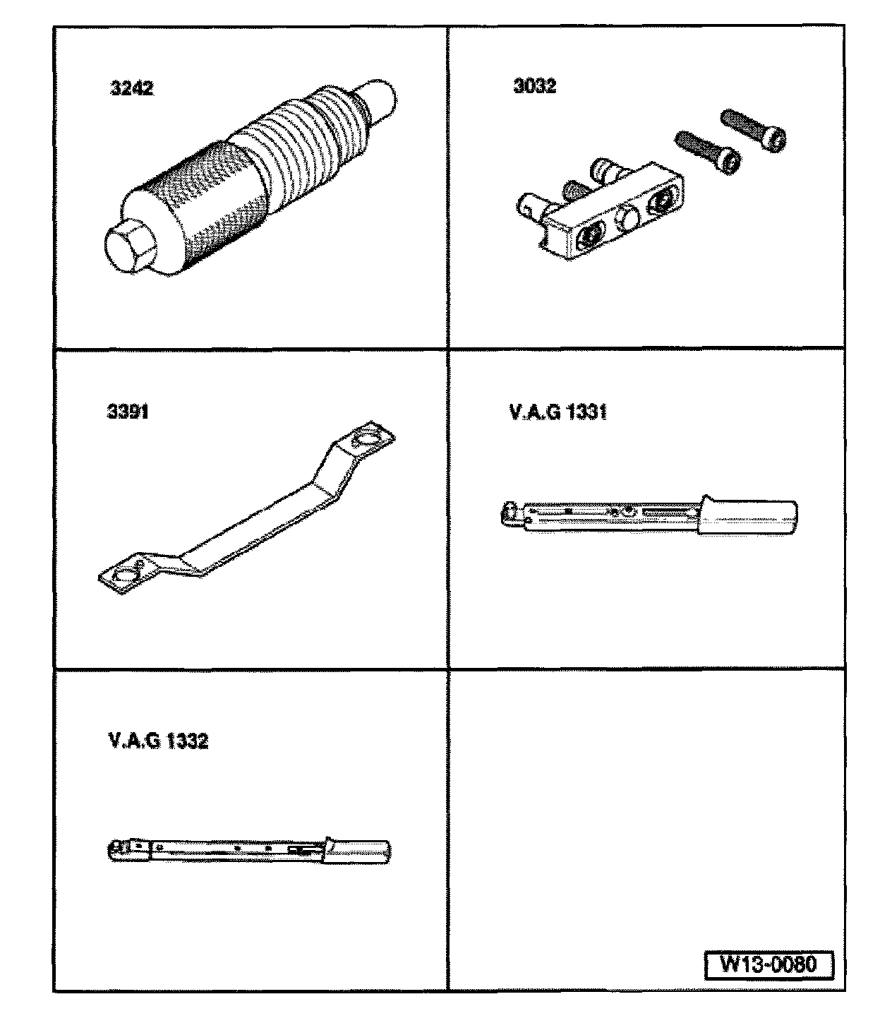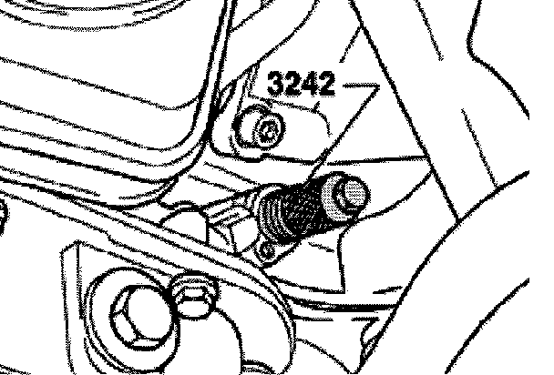 - Screw clamping bolt 3242 into hole so that crankshaft is secured against turning.