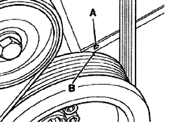 - Position crankshaft to top dead center No. 3 cylinder. Mark on toothed belt guard -A- must align with notch on belt pulley-B.