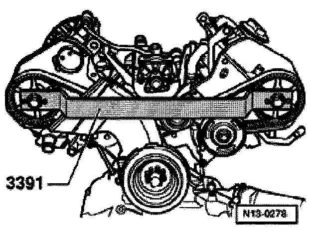 - Using a torque wrench with 8 mm hex bit, apply tension to toothed belt clockwise in direction shown (arrow) until a torque of 15 Nm is attained. This ensures tensioner has expanded completely and is properly engaging toothed belt.