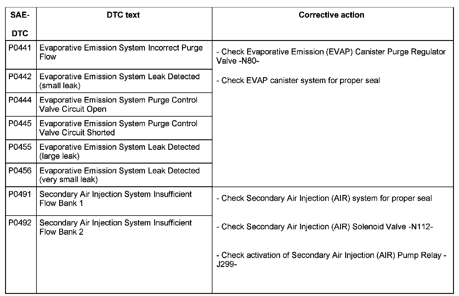 DTC P0441 - P0492:
