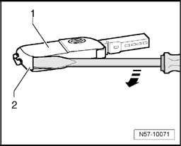 - Insert screwdriver in gap between cover - 1 - and key - 2 -.
