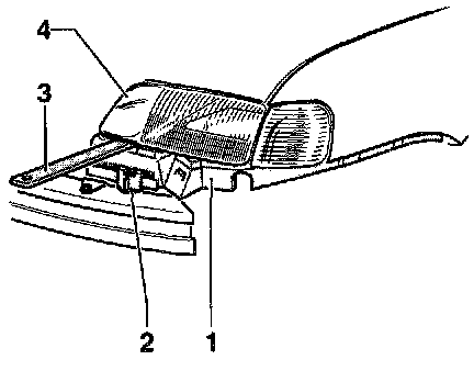 Adjust slide -2- on guide piece -1- so that a gap of 2mm is created between headlight -4- and upper edge of guide -1-.