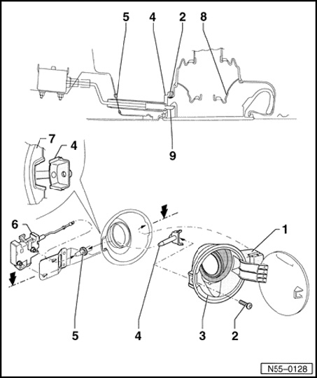 - To remove fuel filler cap, press out securing pin in tank flap unit.
