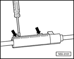 NOTE: When installing, make sure that Bowden cable sleeve is inserted correctly - arrow - and coupling is locked.