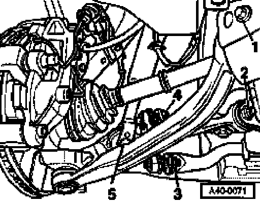 - Remove hex nut -2- for track-control link on subframe and take out hex bolt.