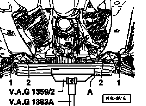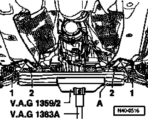 - Place transmission jack VAG 1383 A with 1359/2 under subframe and exert slight counter pressure.