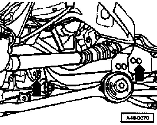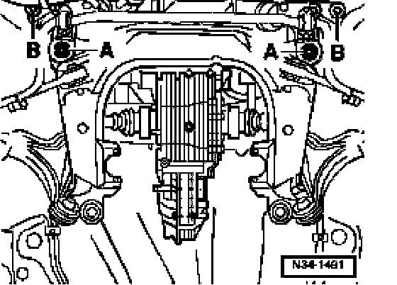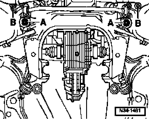 - Loosen hex bolts -B- until the subframe can be taken out.