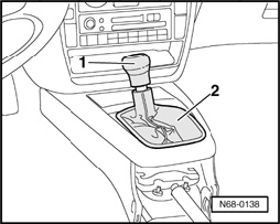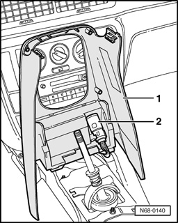 - Remove center console - 1 - from instrument panel and remove upward from shift lever.