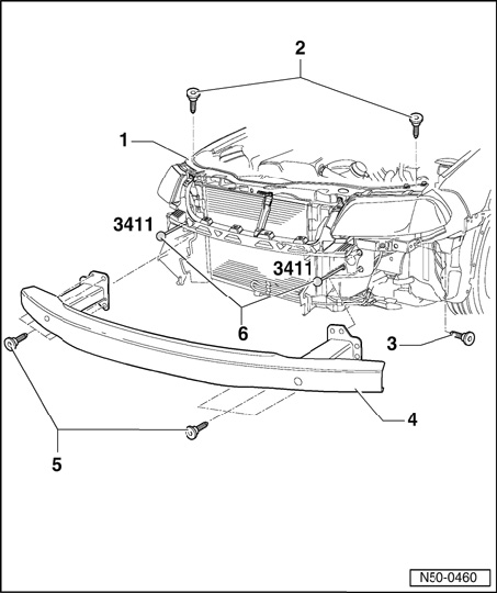 Lock Carrier And Front Bumper Reinforcement, Service Position, Assembly Overview