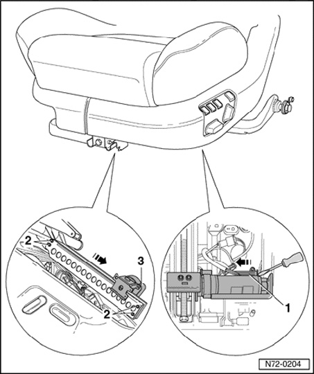 - Remove seat fore and aft adjustment - 3 - in direction of arrow.