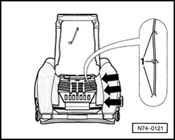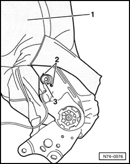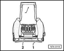 - Loosen cover at rear - 1 - and front - 2 -.