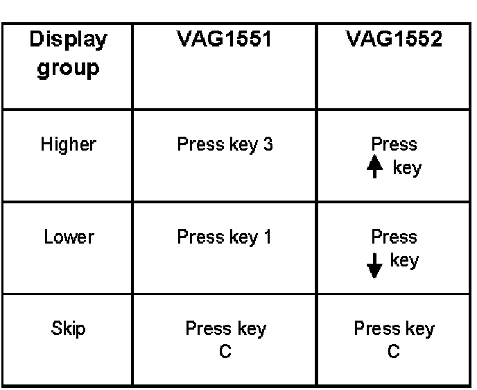 The measured value block is divided into 15 display group numbers. The assignment of the individual display groups can be taken from the display group overview.