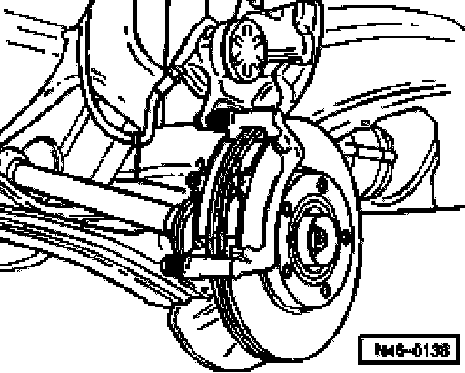 ^ Swing brake caliper housing down and secure with new self-locking bolt.
