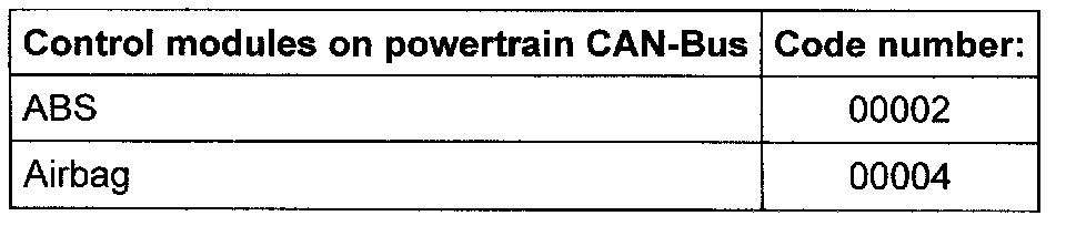 The code numbers for the control modules installed in the vehicle that are connected to the powertrain databus must be added.