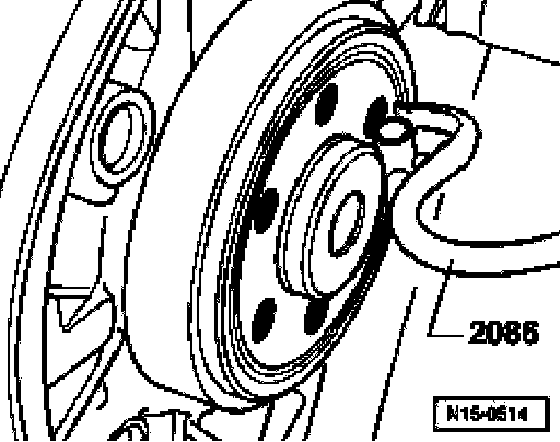 ^ Install assembly sleeve T101 22/2 together with oil seal on crankshaft flange.