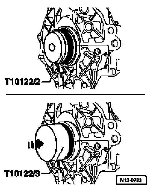 ^ Press in oil seal using assembly sleeve T10122/3 until stop.