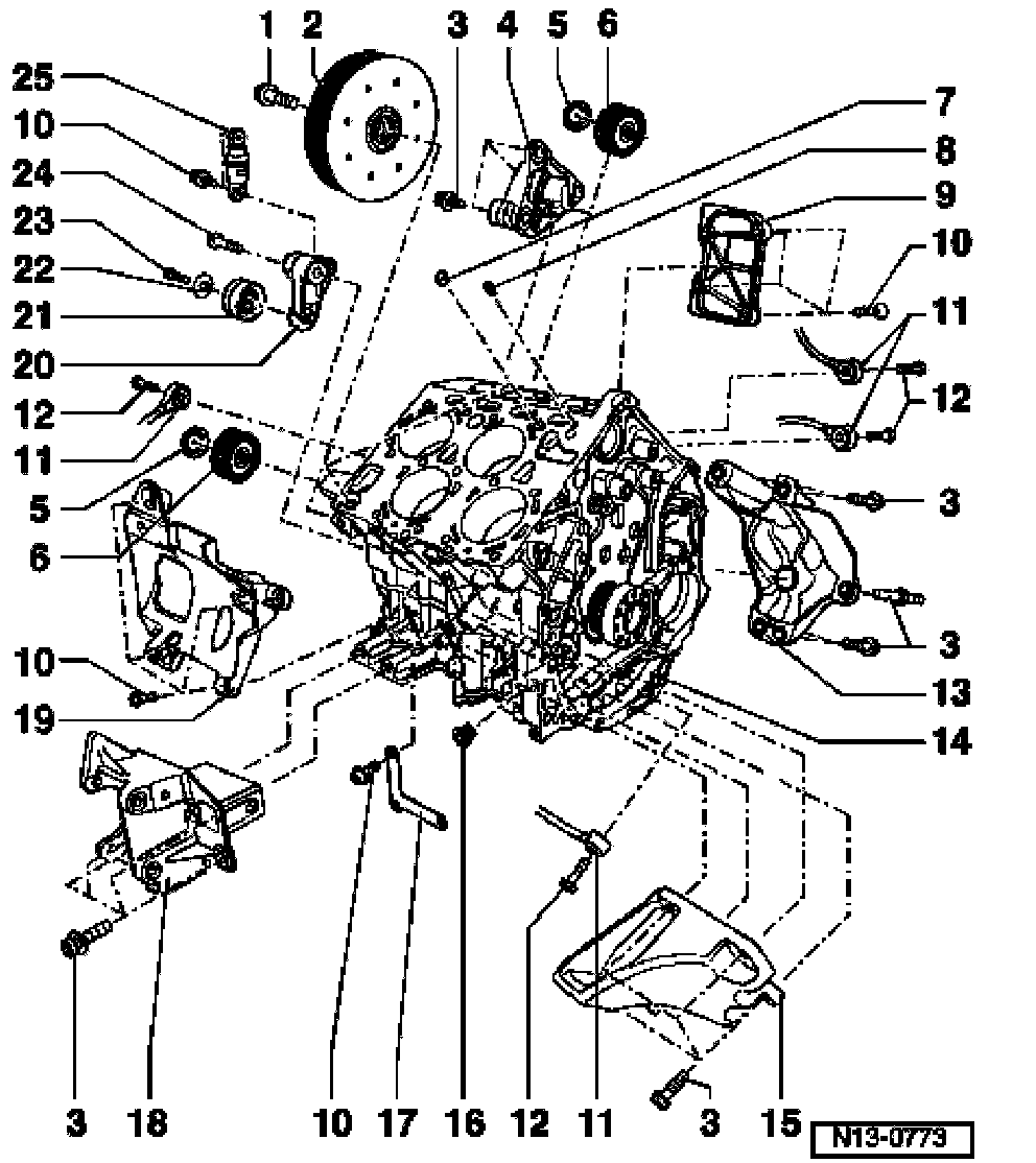 ^ Secure engine in engine and transmission stand VAS 6095 when performing work on the engine.