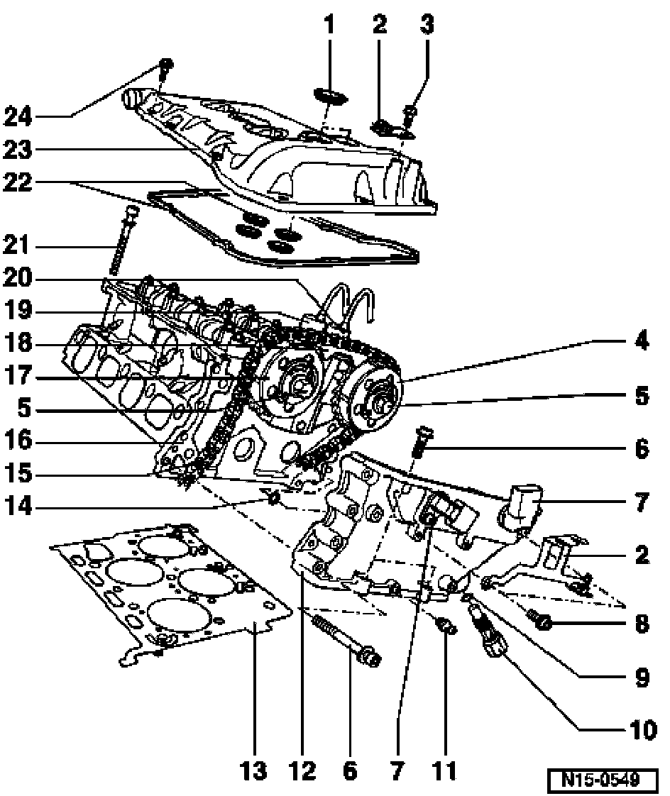 ^ Removing and installing parts of the chain drive system, Refer to Timing Chain, Service and Repair.