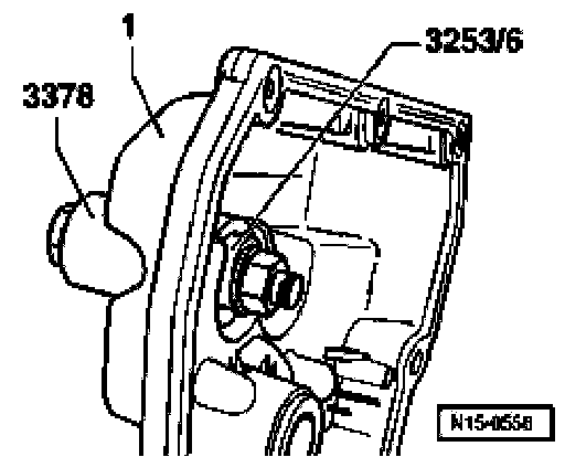 ^ Install seal with fitting sleeve 3378 in cylinder head cover -1- and pull in flush with with fitting sleeve 3253/6 from assembly device 3253.
