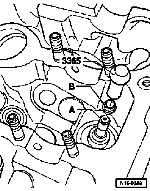 ^ Oil sealing lip of valve stem seal -B- insert in fitting tool 3365 and carefully push into valve guide.