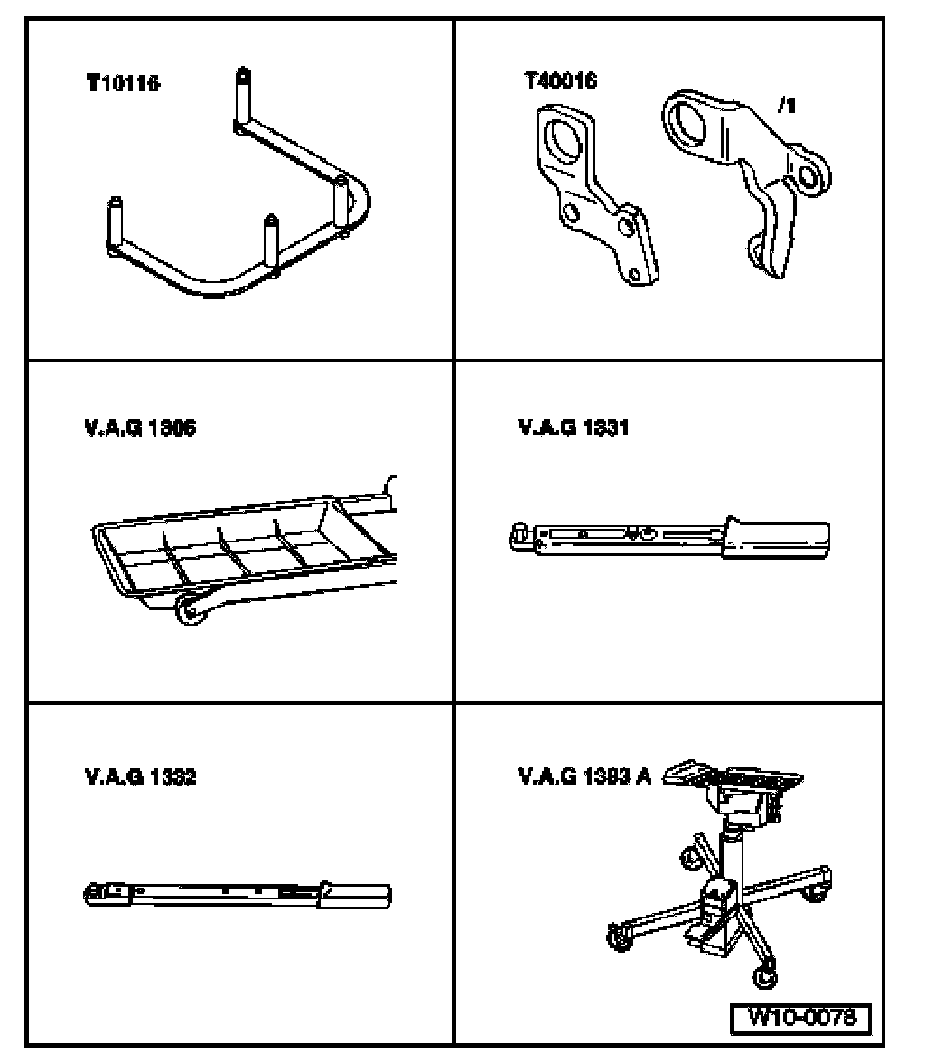 ^ Secure engine in engine and transmission stand VAS 6095 when working on engine.