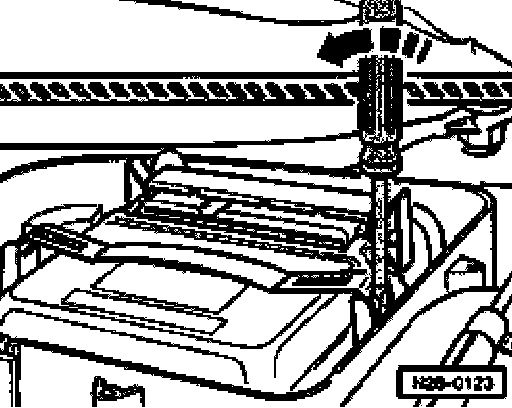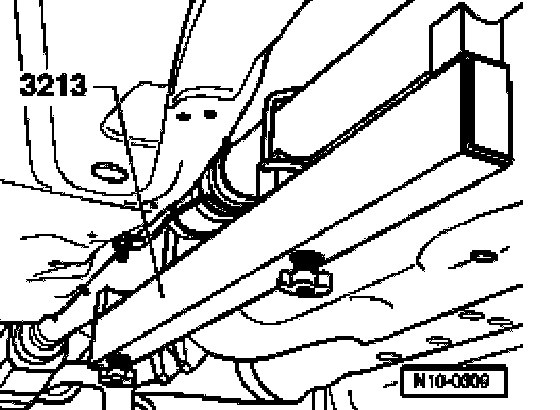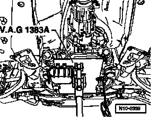 ^ Secure transmission with engine/transmission jack VAG 1383 A.