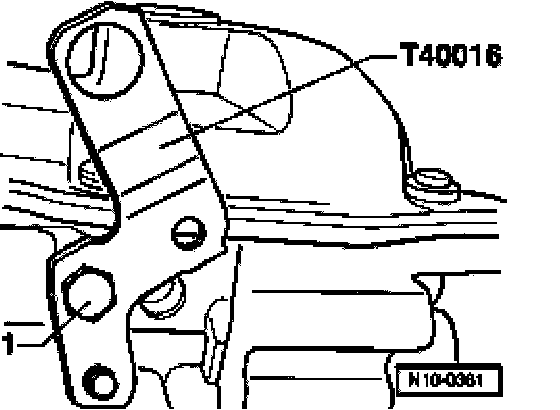 ^ Secure T40016 transport bracket to rear left of cylinder head with securing screw -1-.