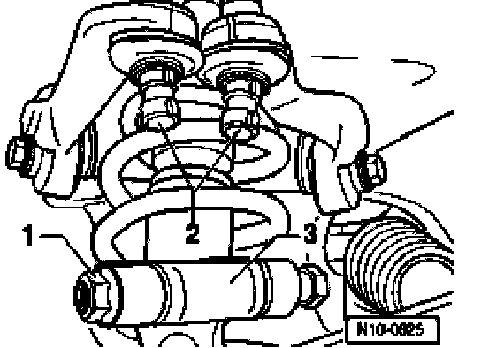 ^ Loosen bolted union -1- and pull upper links -2- off wheel bearing housing -3-.