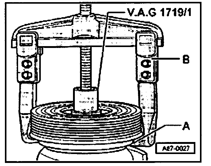 - Drive on belt pulley with plastic head hammer and VAG 1719/2 (or equivalent).