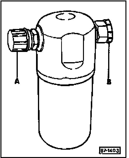- Do not remove sealing caps -A- and -B- until just prior to installation. The drier dessicant in non-sealed accumulators becomes saturated with moisture and therefor unusable.