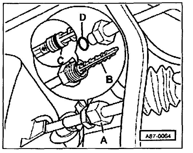 - Loosen and separate coupling -A- on evaporator inlet pipe.