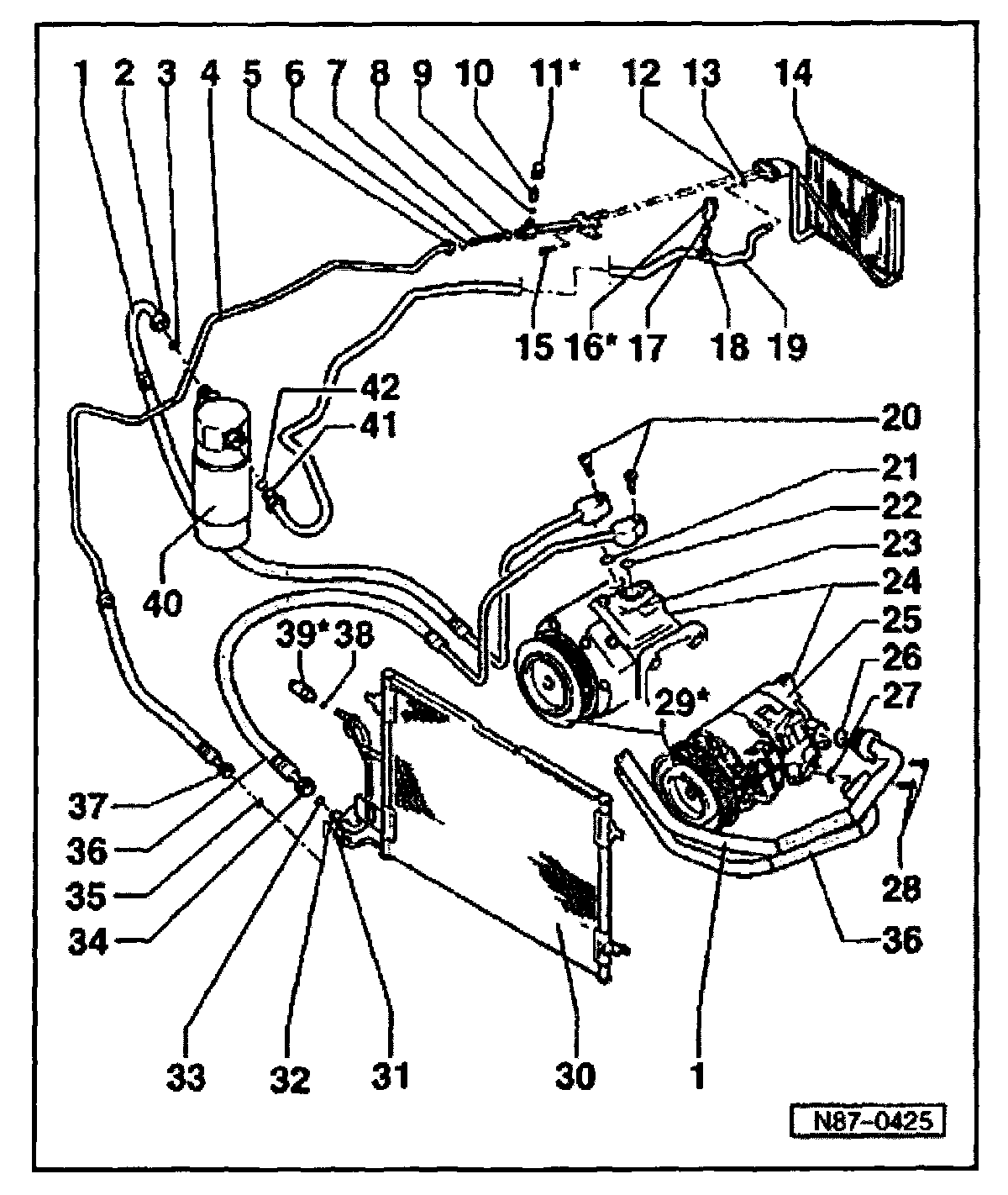 - Only system components identified with an * can be serviced or replaced without discharging refrigerant system.