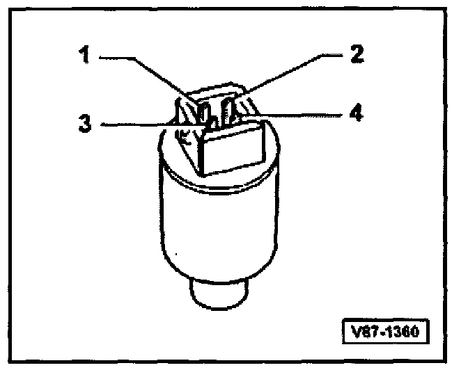 Switch part between terminals 1 and 2 switches off the A/C clutch -N25- when the system pressure is too high or when there is not enough refrigerant in the system