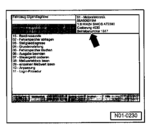 - Press buttons -0- and -1 - "01 - Engine electronics" on display-arrow-.