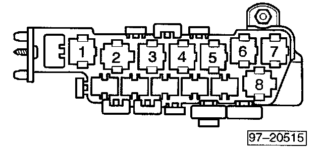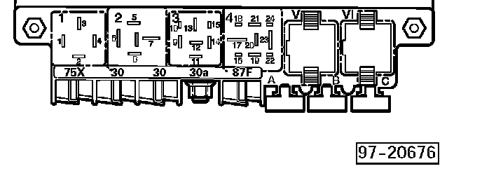 Relay location on the eightfold auxiliary relay panel, behind relay panel:
