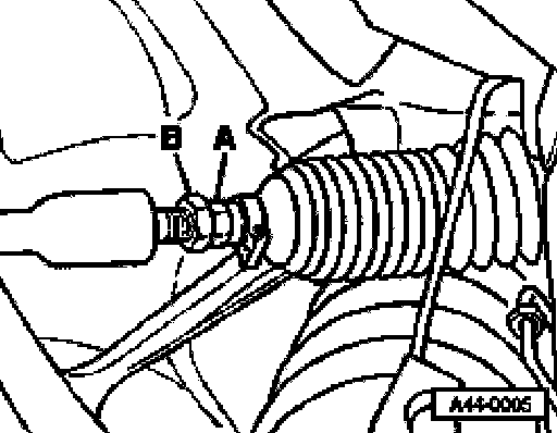 - Tighten lock nut -B-, Refer to Steering Gear,Power Steering Gear, Disassembling and Assembling, See - item 2 or Power Steering Gear For Vehicles With 5, 6 or 8-Cylinder Engine, Disassembling and Assembling, See item 2 and check toe in again.