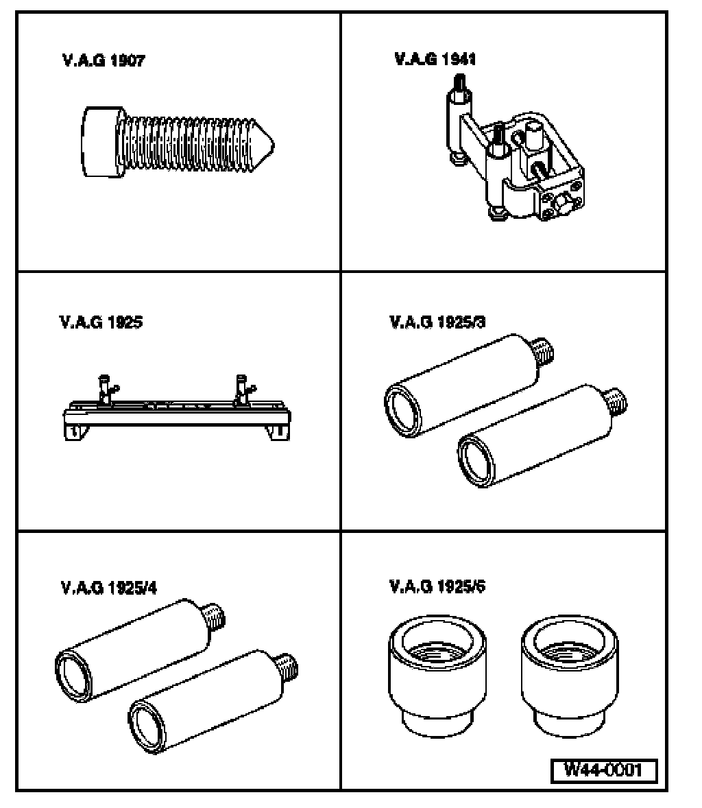 The employment of adapters VAG 1925/3 or VAG 1925/4 is dependent on the hoist version.