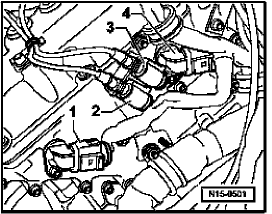 - Replace the respective camshaft position sensor (Camshaft Position (CMP) Sensor -G40-, Camshaft Position (CMP) Sensor 2 -G163-, Camshaft Position (CMP) Sensor 3 -G300- or Camshaft Position (CMP) Sensor 4 -G301-), item 3 .