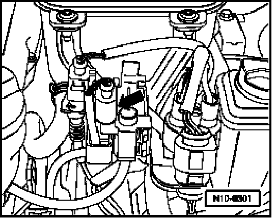 - Disconnect 2-pin connector from Left Electro-Hydraulic Engine Mount Solenoid Valve -N144- (arrow).