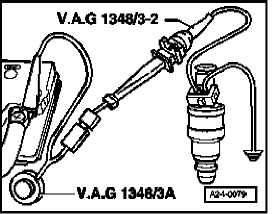 - Use adapter cable to connect second terminal of fuel injector to VAG1348/3 remote control with VAG1348/3-2 adapter cable.