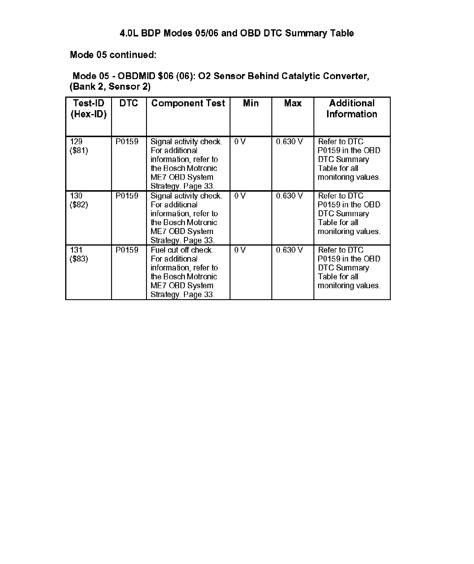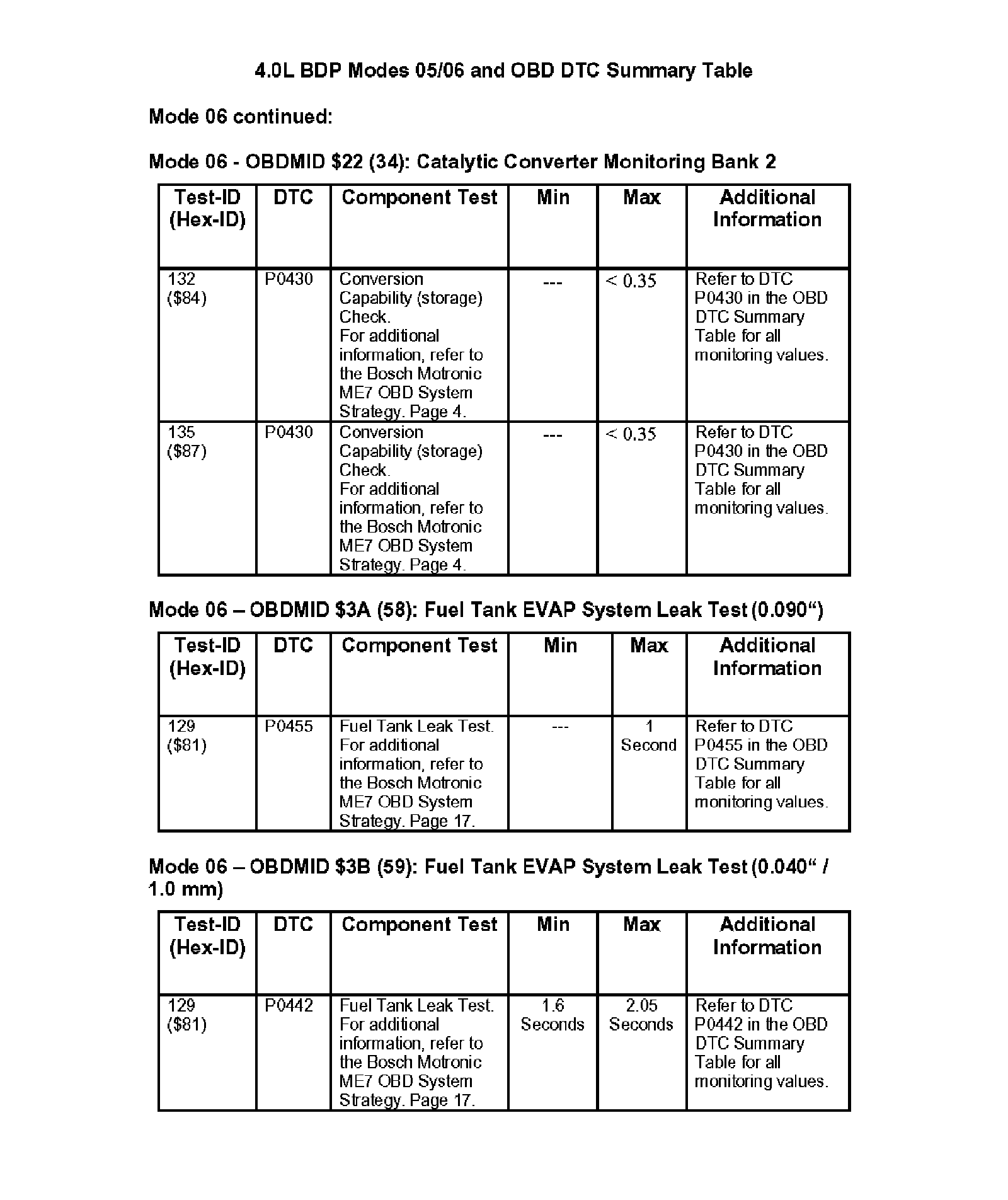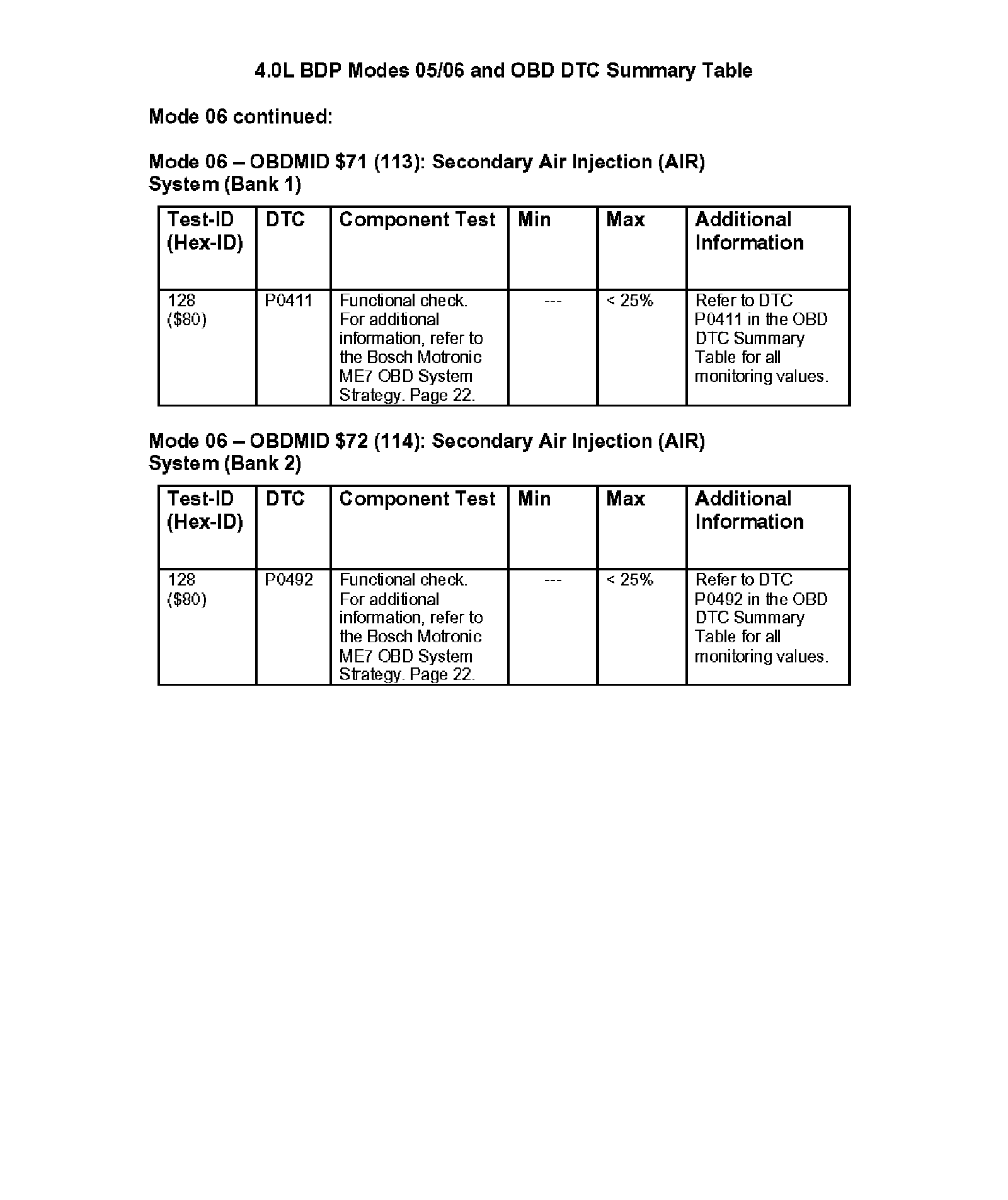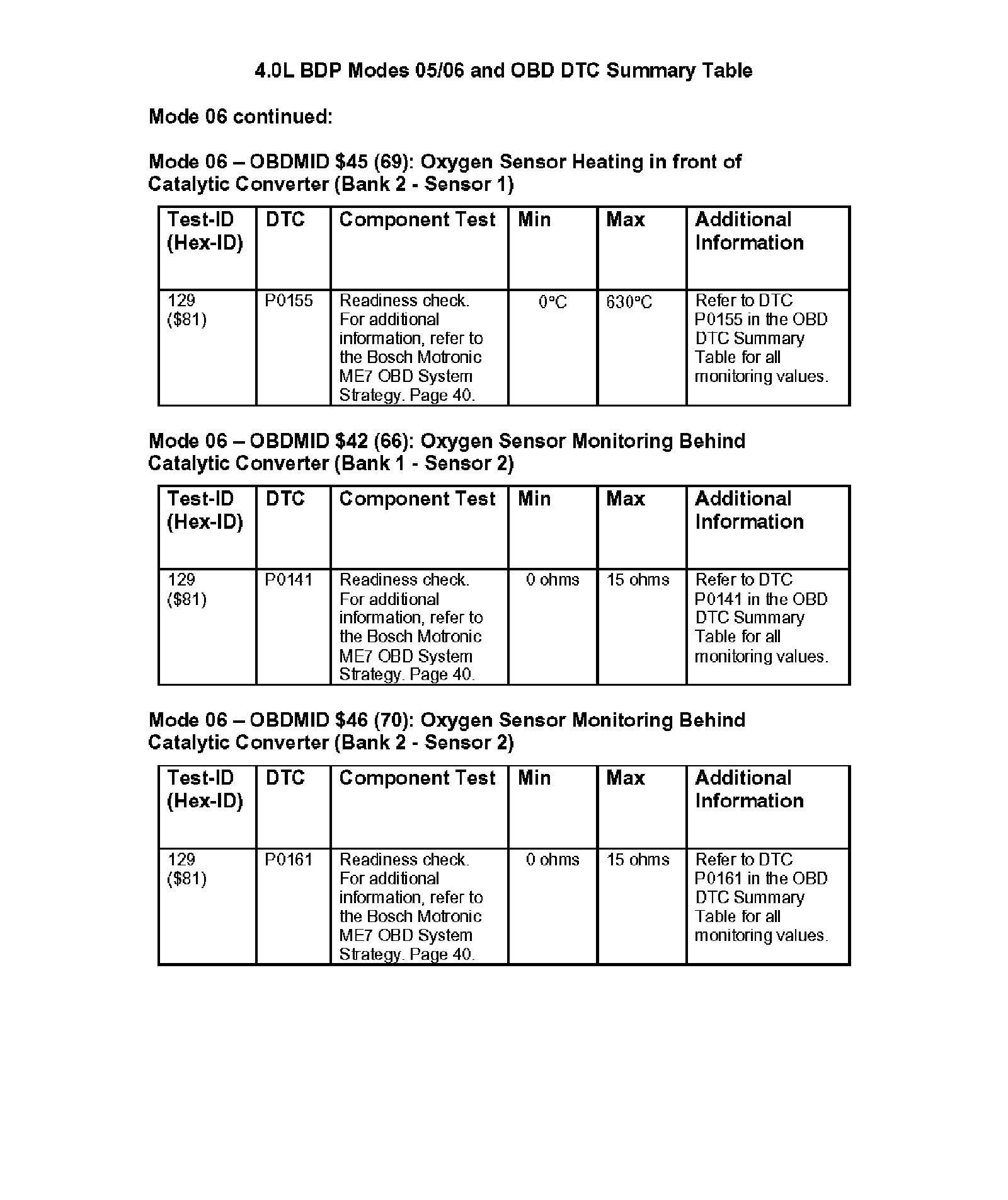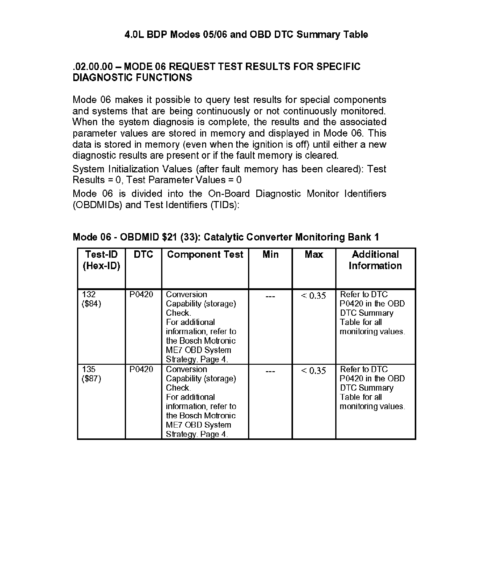 Modes 05/06 and OBD DTC Summary Table