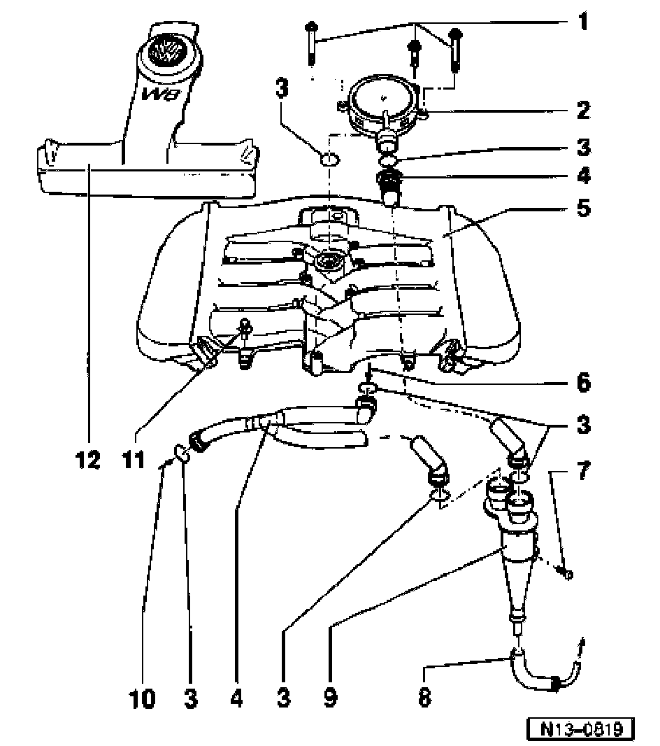 ^ Secured with retainer at connecting piece for combi-valve (cylinder bank 2)