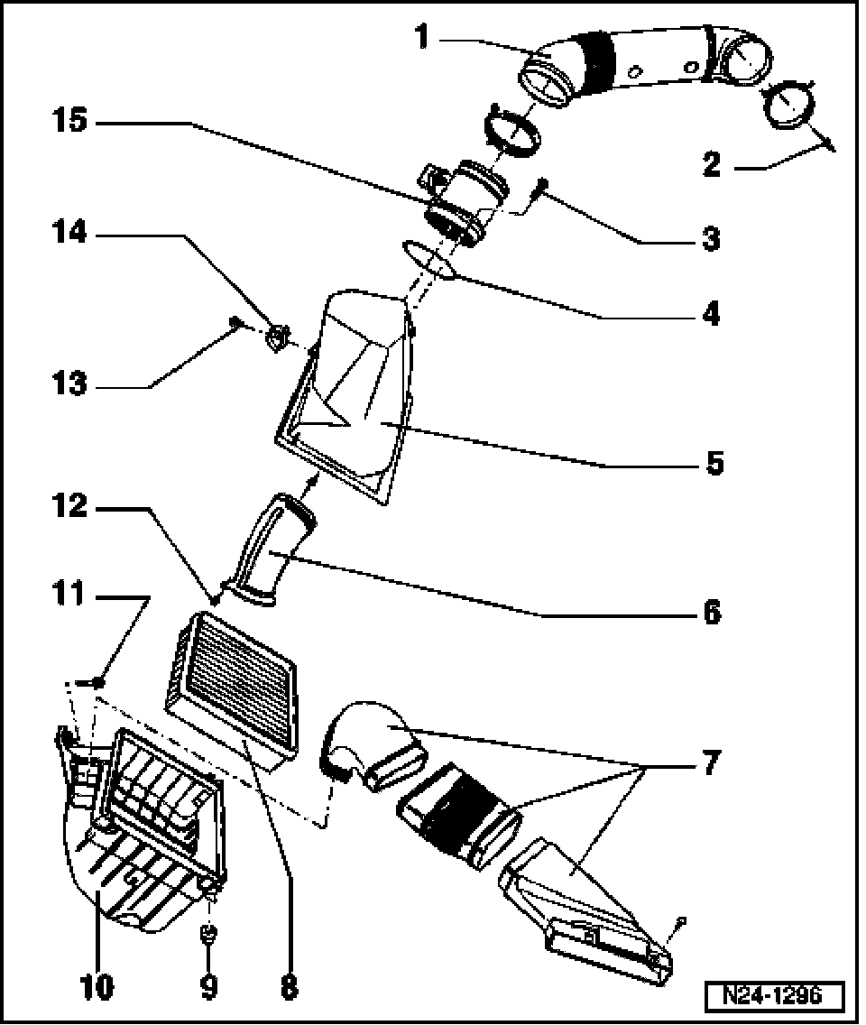 15 Mass Air Flow (MAF) sensor -G70- with Intake Air Temperature (IAT) sensor-G42-