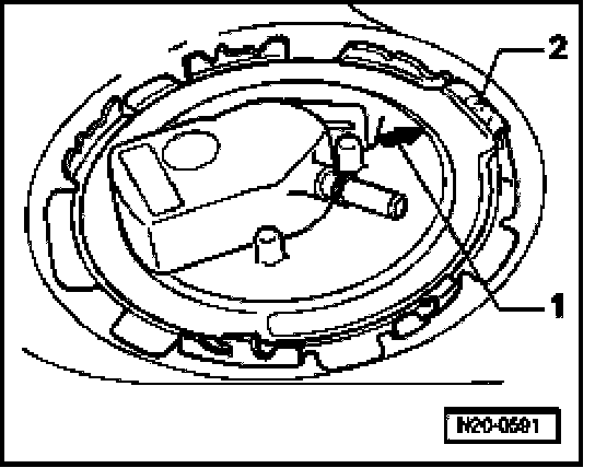 Marking on flange -1- must align with hole on auxiliary fuel tank -2-.