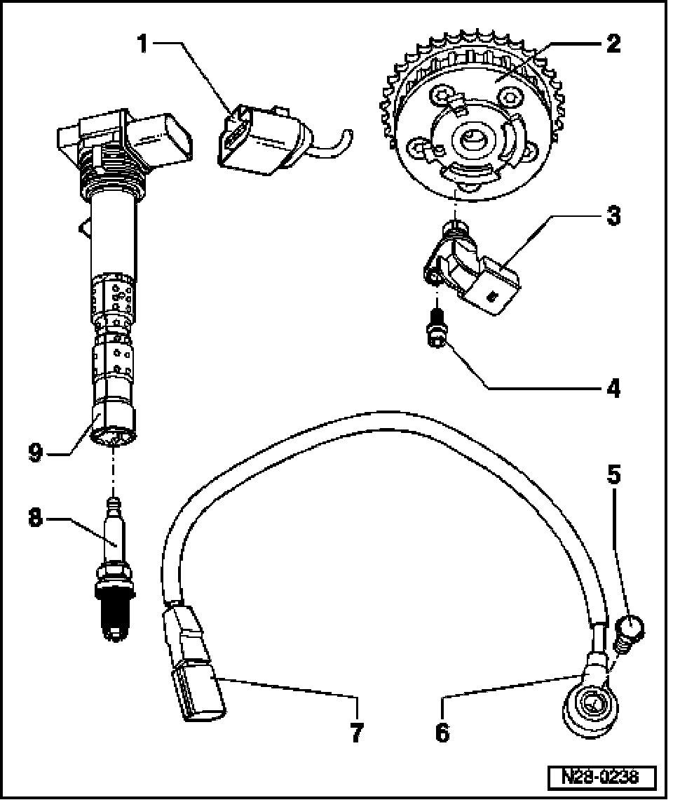 9 Ignition Coil 1 with Power Output Stage -N70-, Ignition Coil 2 with Power Output Stage -N127-, Ignition Coil 3 with Power Output Stage -N291-, Ignition Coil 4 with Power Output Stage -N292-, Ignition Coil 5 with Power Output Stage -N323- to Ignition Coil 8 with Power Output Stage -N326-)*