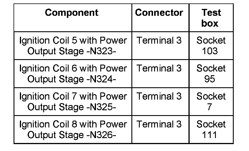 - Repeat test at connectors for ignition coils cylinder 2 through 8.