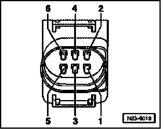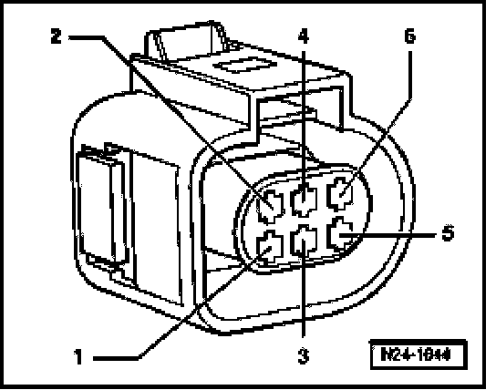 - Connect multimeter to connector terminals 2 + 6 for voltage measurement.
