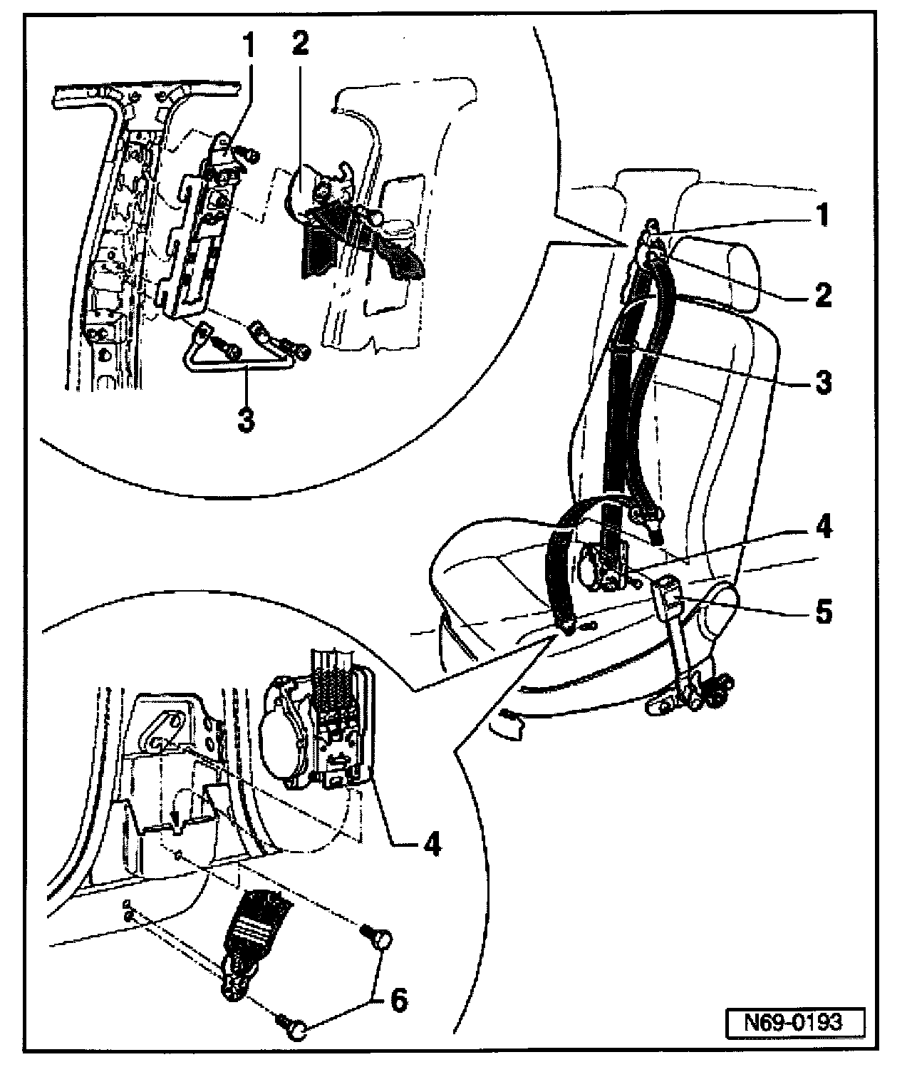 Before starting any body disassembly, straightening or any other body repair work, the belt tensioner units must be removed.